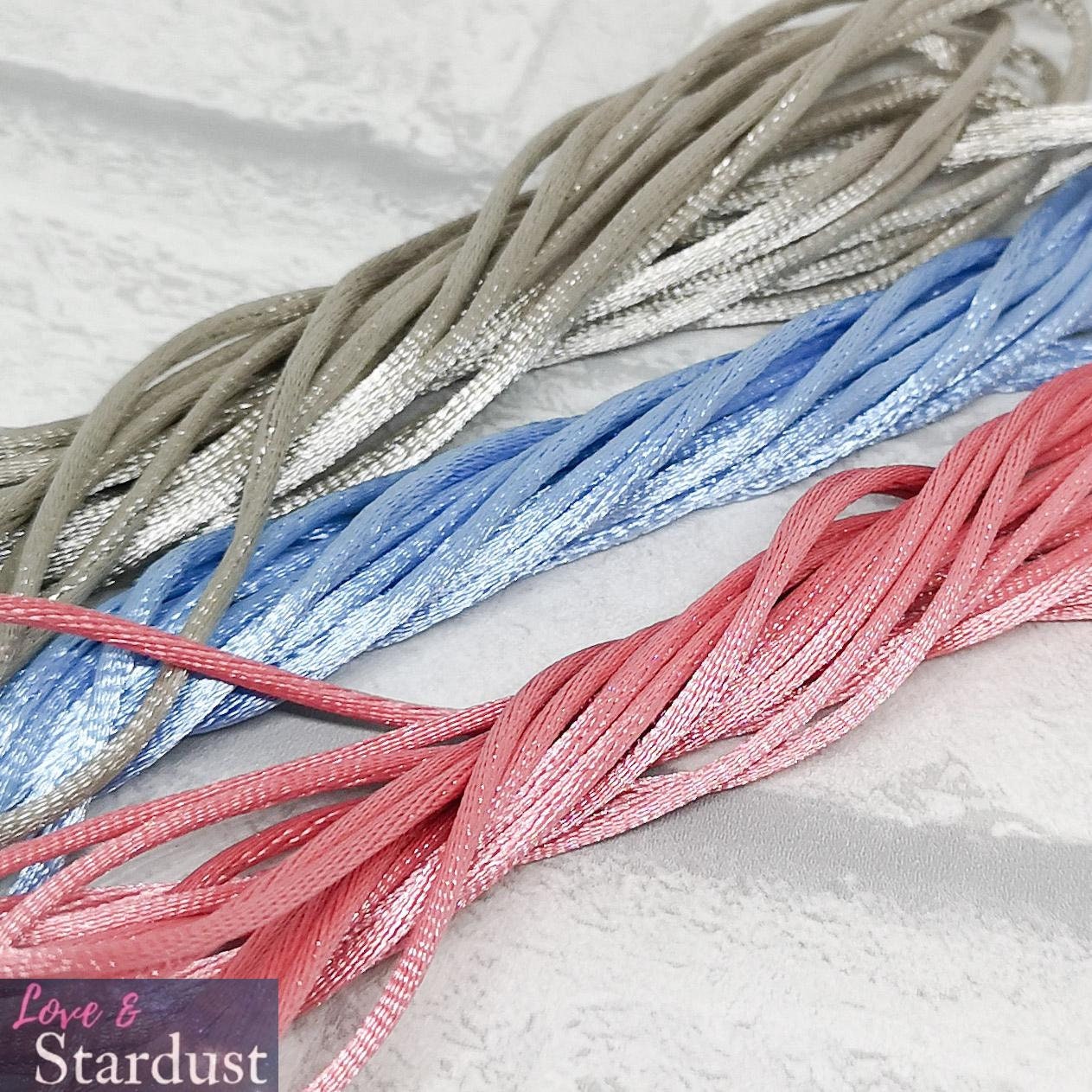 Aluminium component measures 40mm x 15mm with 2mm thick satin cord
