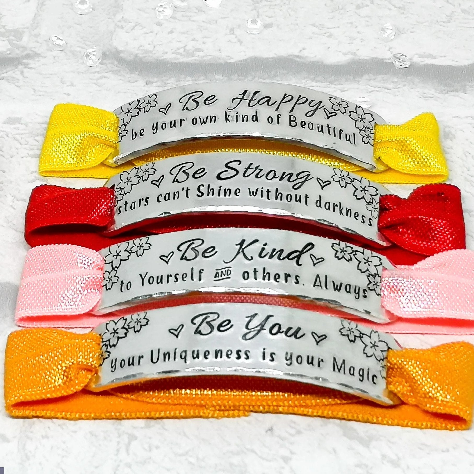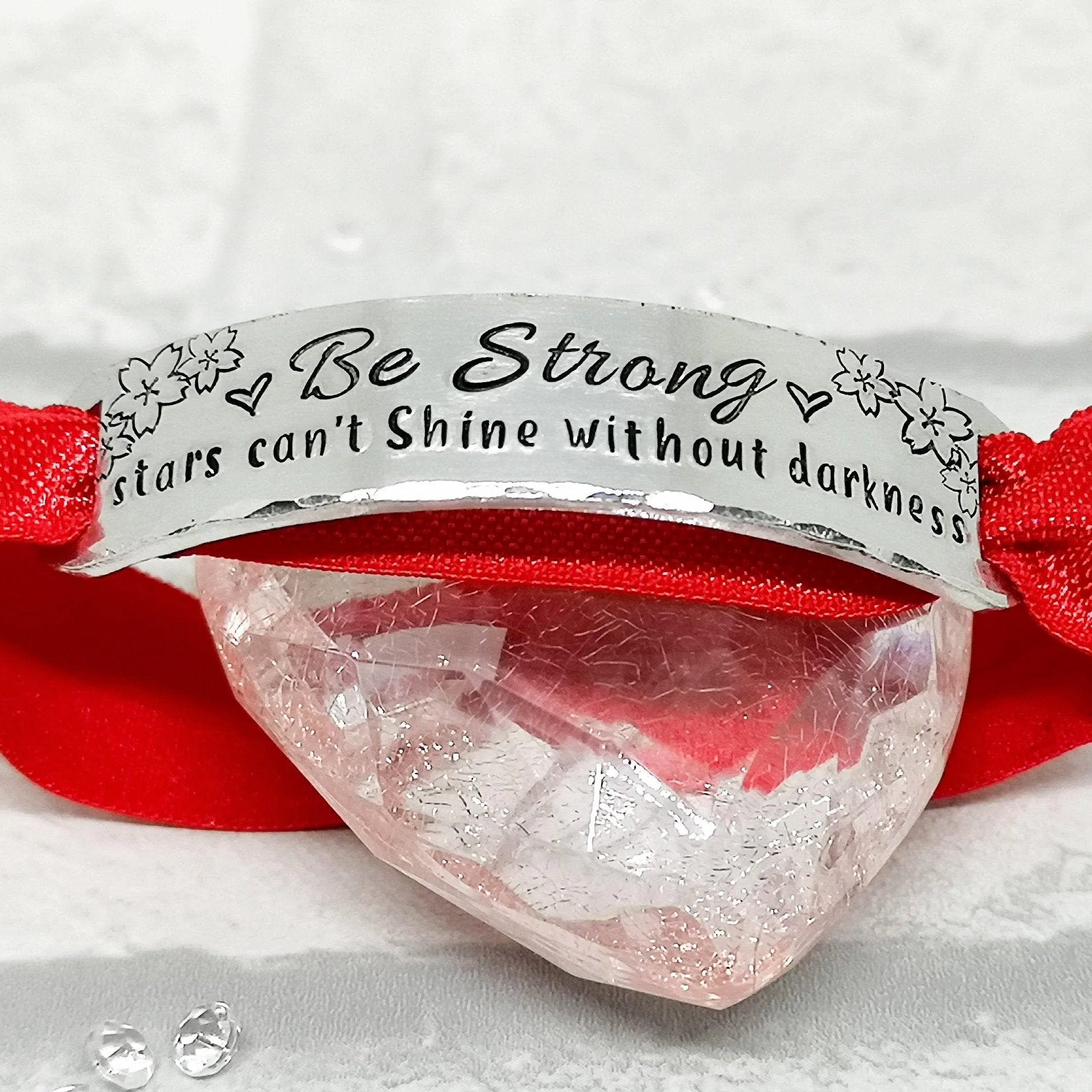 Hand Stamped Bracelet with the quote BE STRONG - stars can't shine without darkness on an soft elasticated band