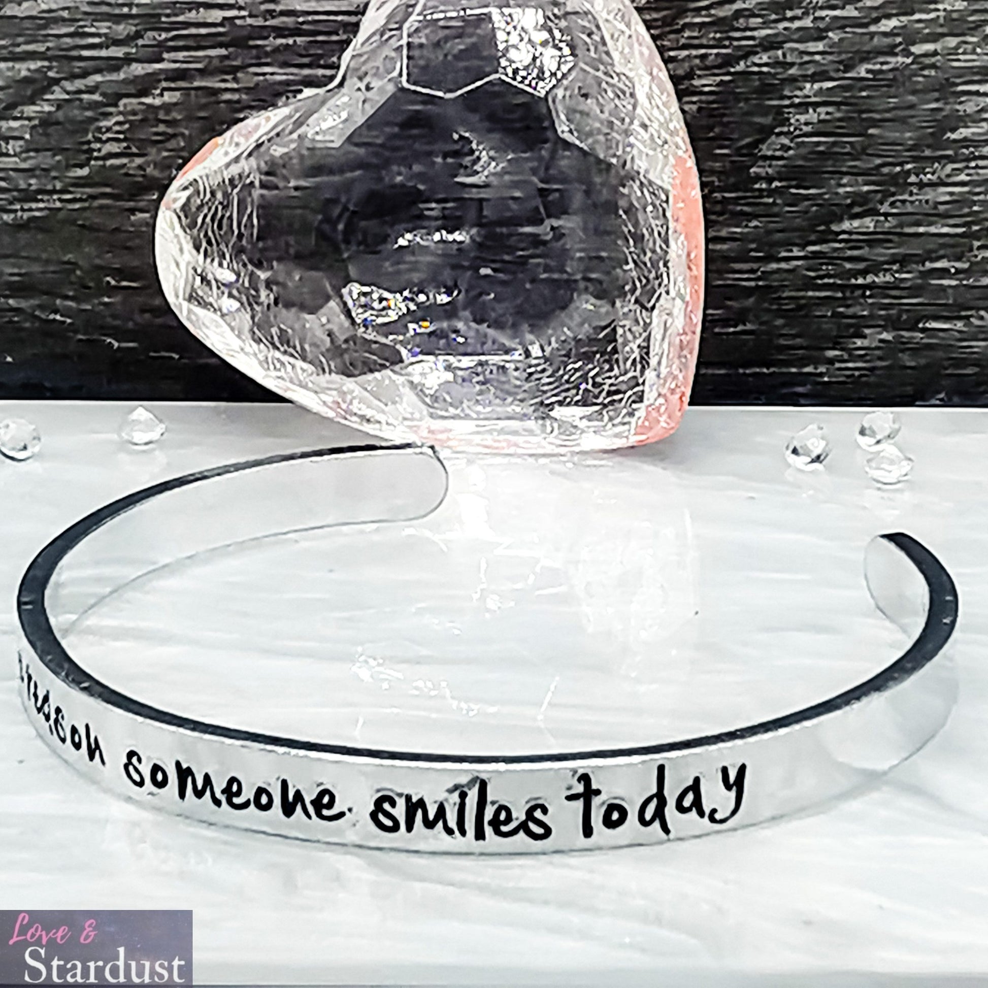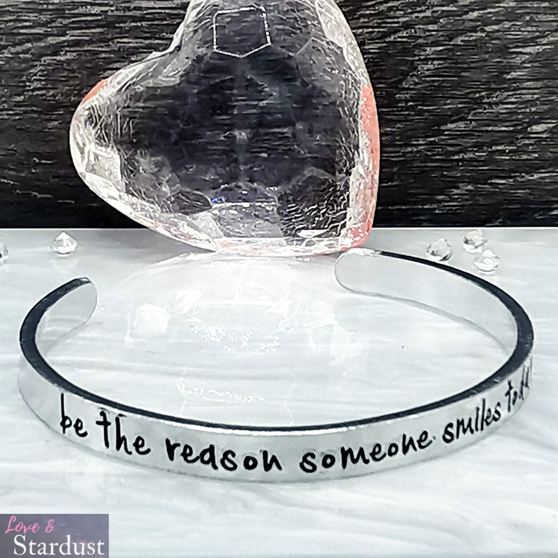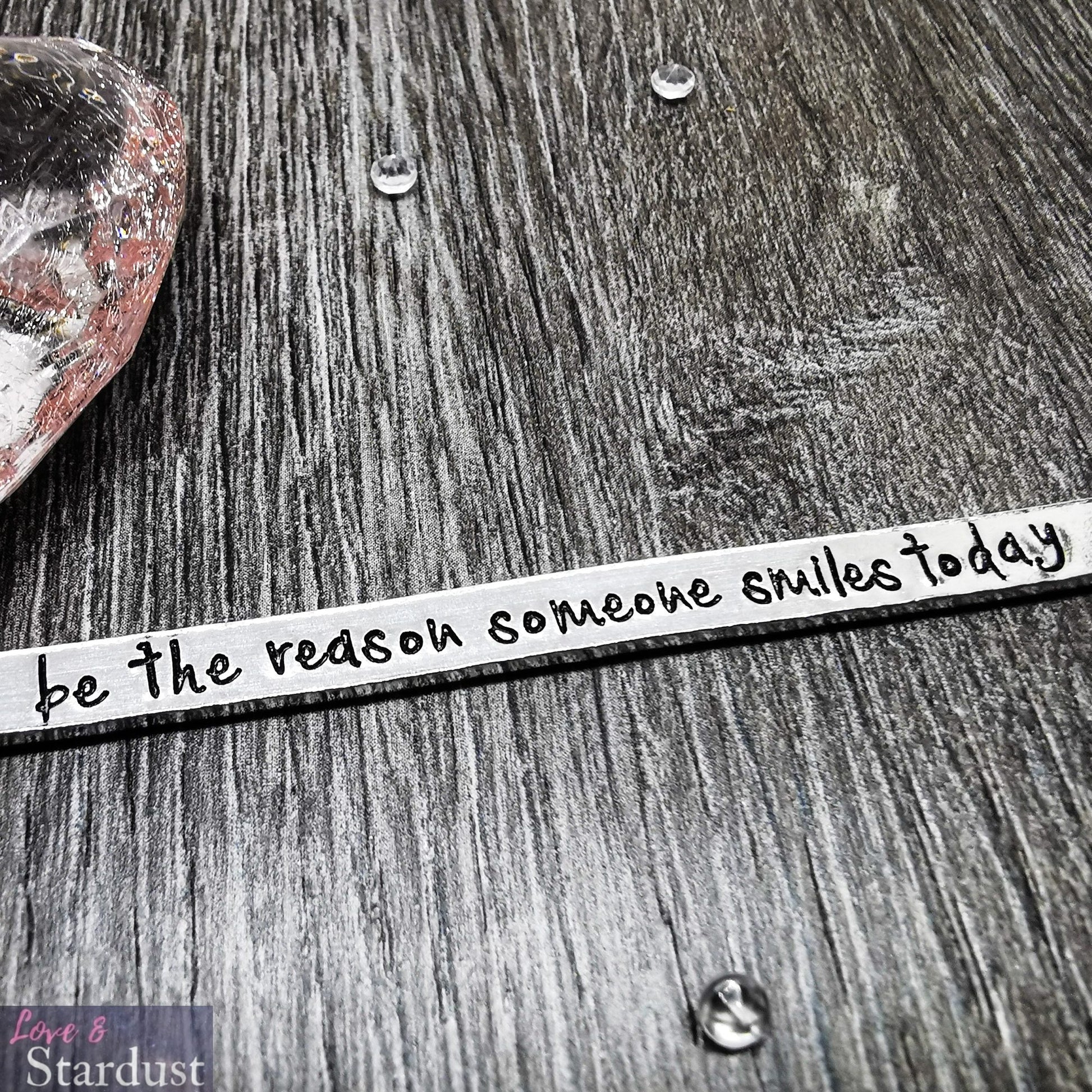Lightweight Aluminium Skinny Cuff Bangle with the quote "be the reason someone smiles today"