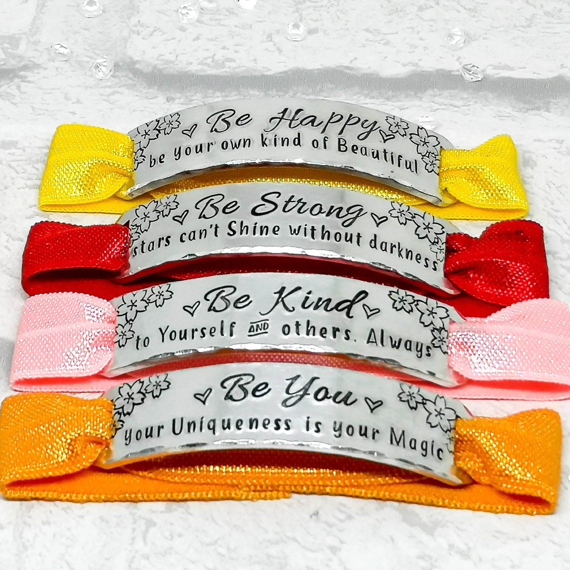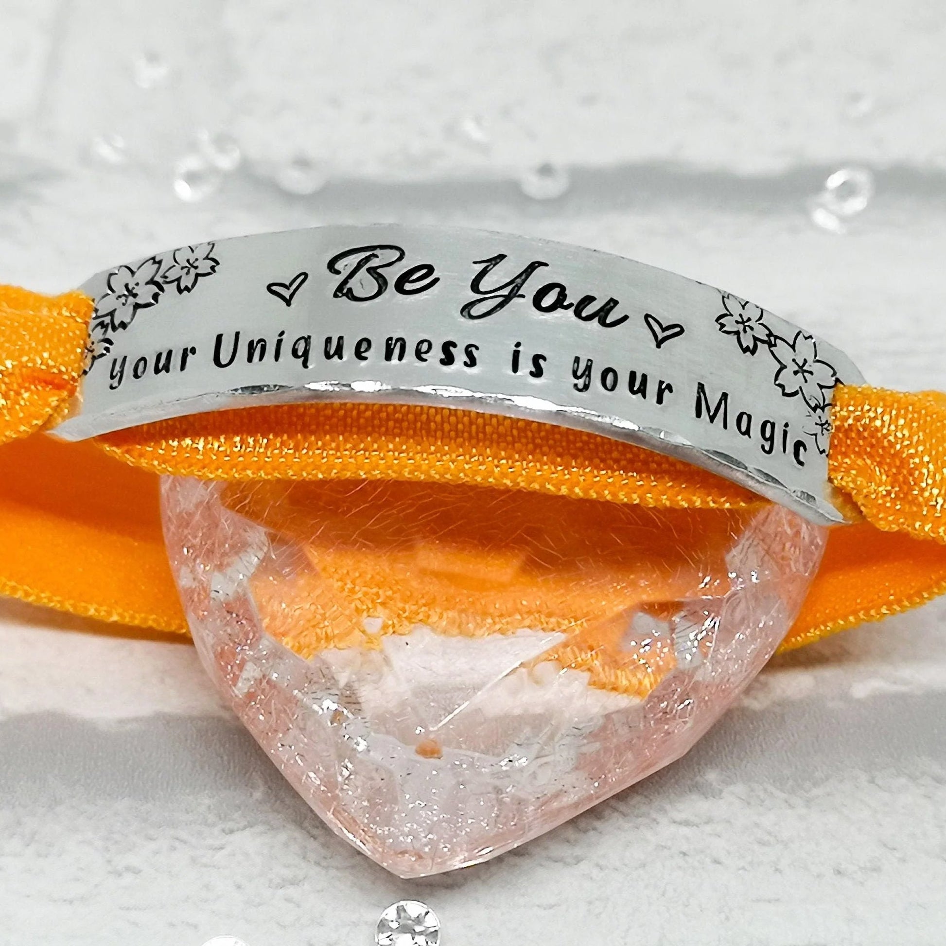Hand Stamped Bracelet with the quote BE YOU - your uniqueness is your magic on an soft elasticated band