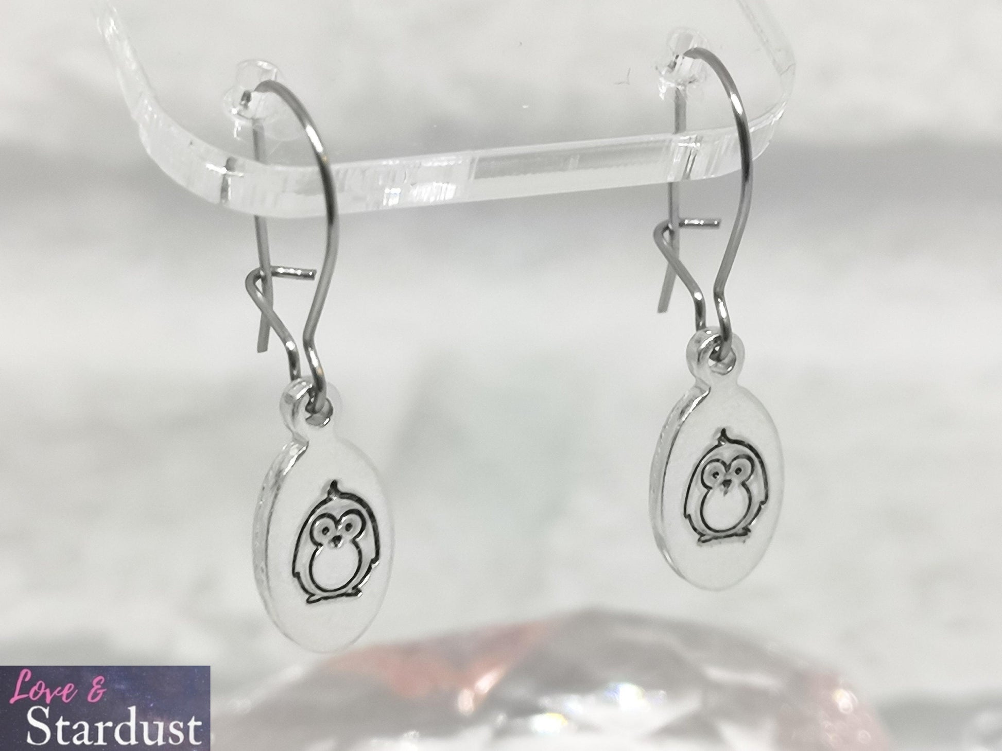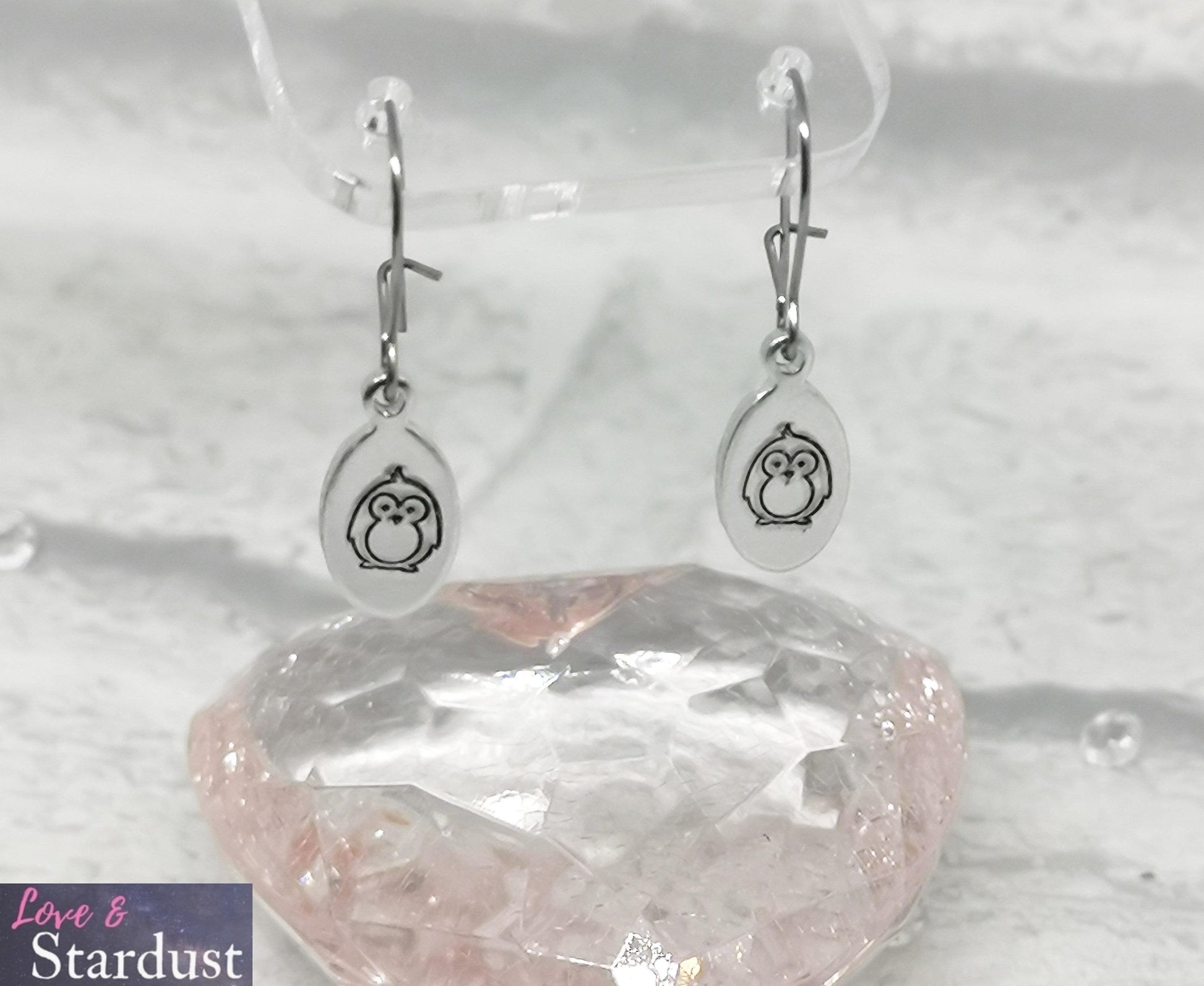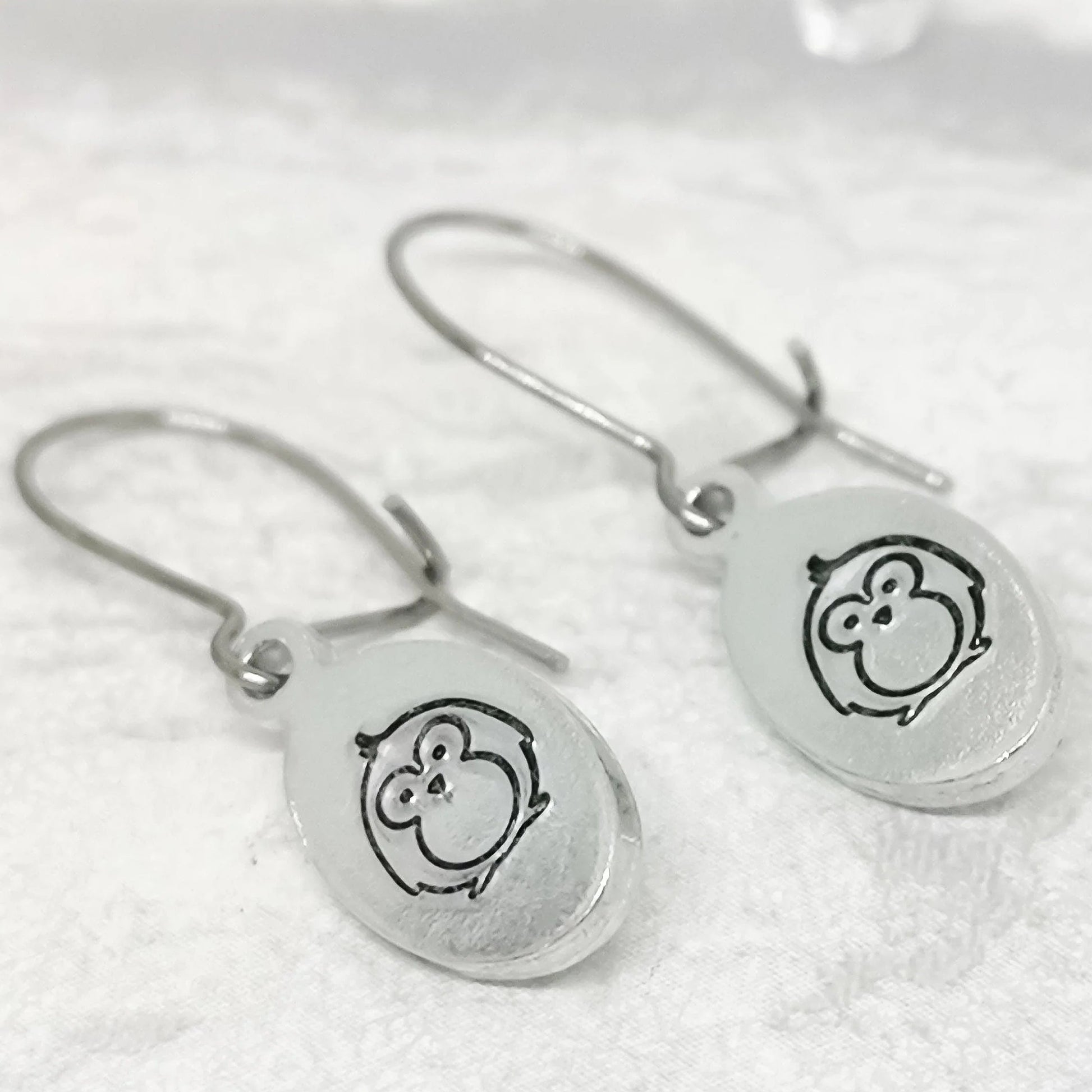 Hypo-allergenic Surgical Steel wires with hand-stamped drop tag with a LITTLE PENGUIN design
