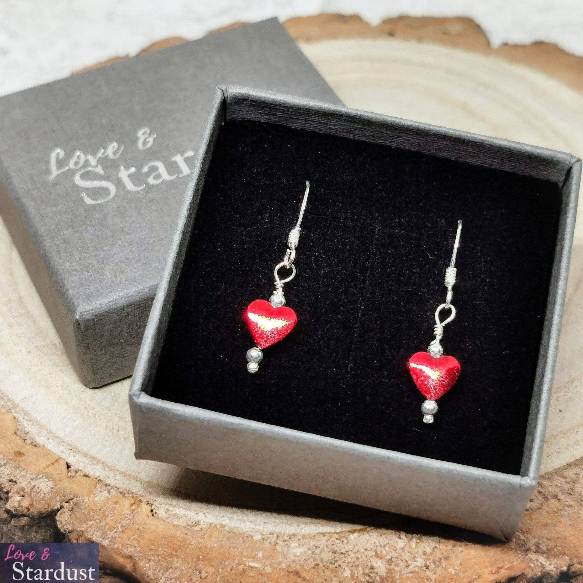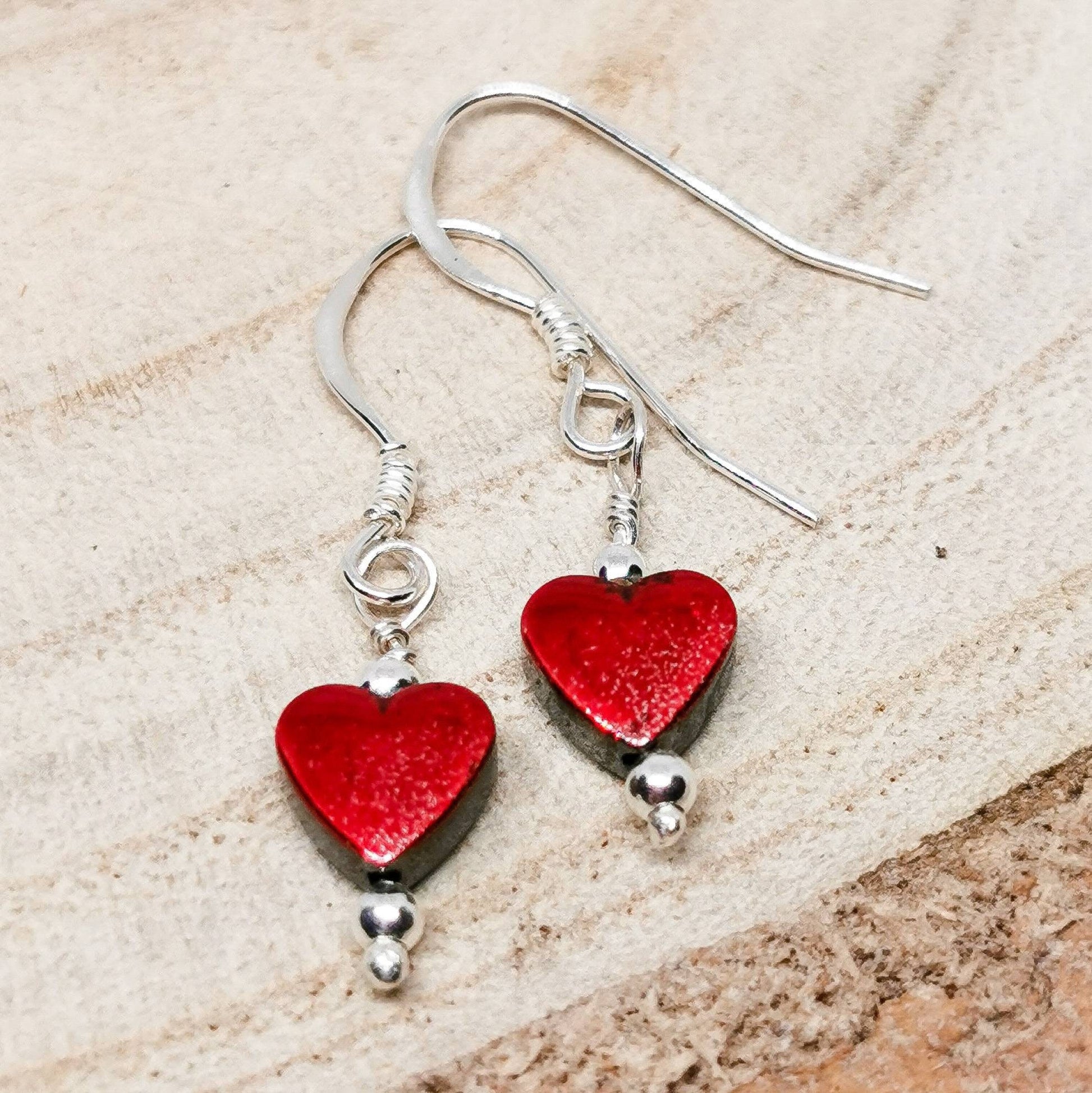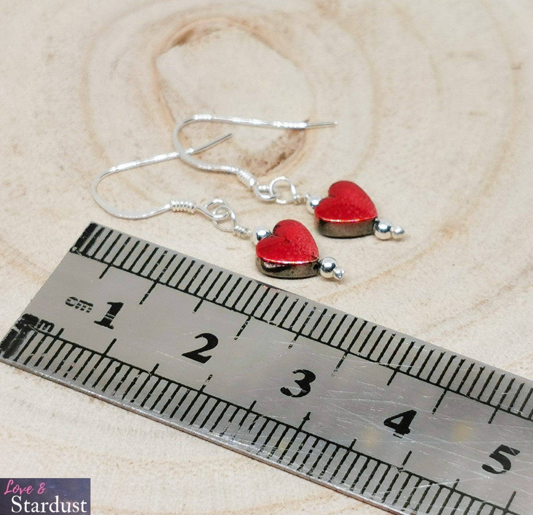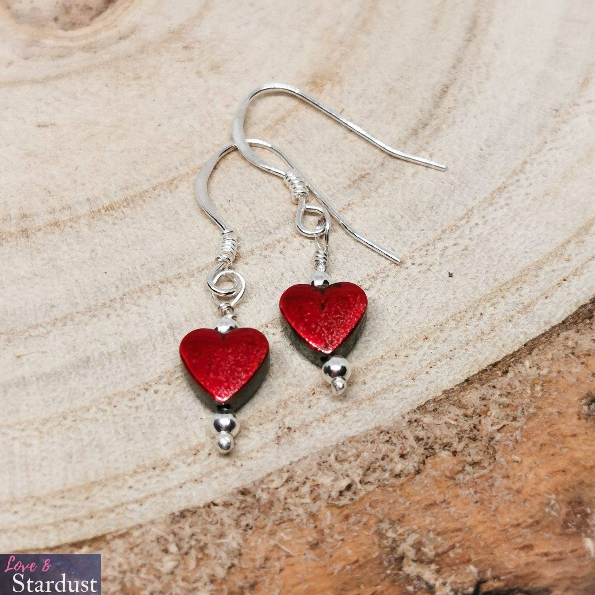 Red-coated Hematite Heart Sterling Silver earrings, in a beautiful gift box