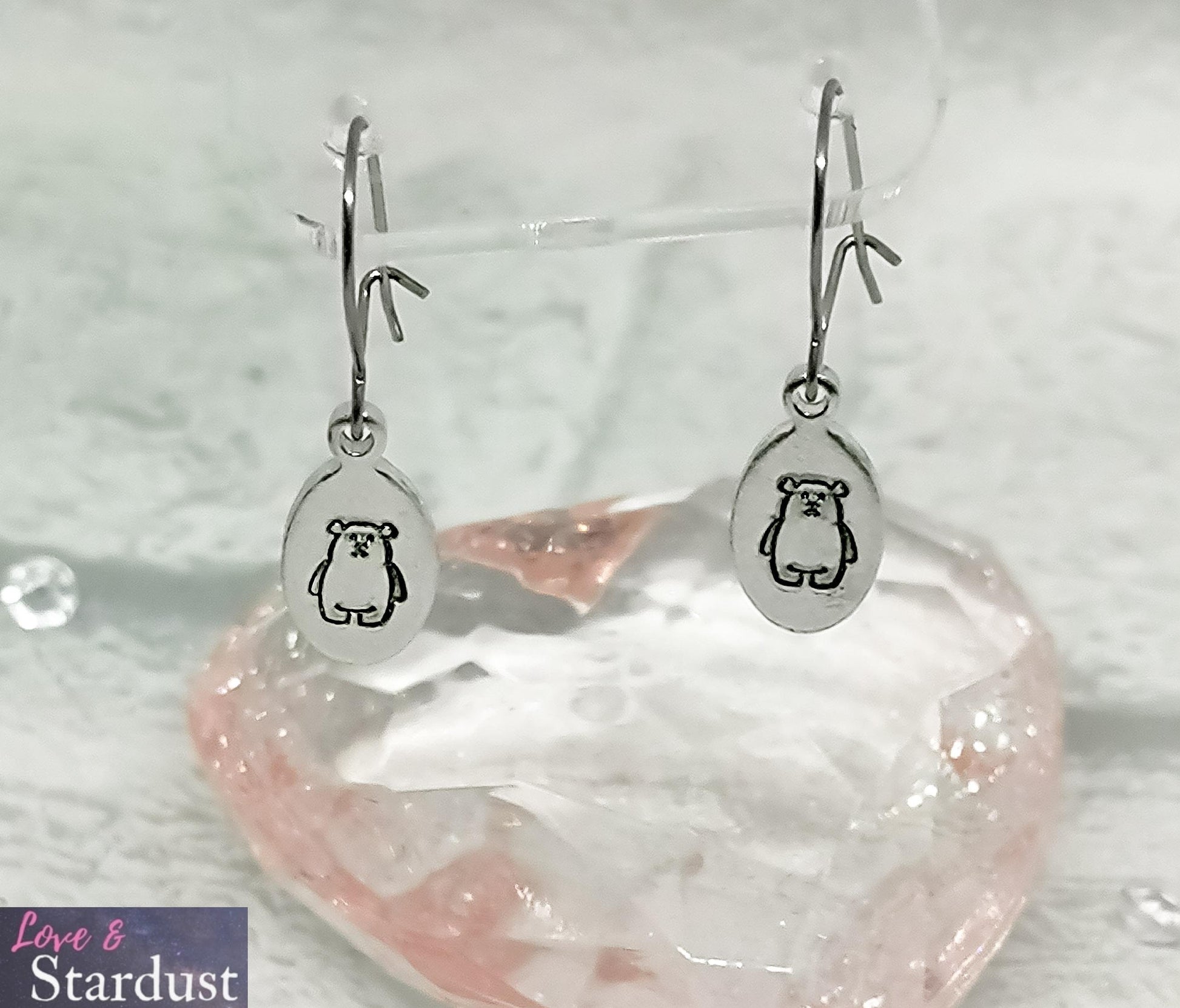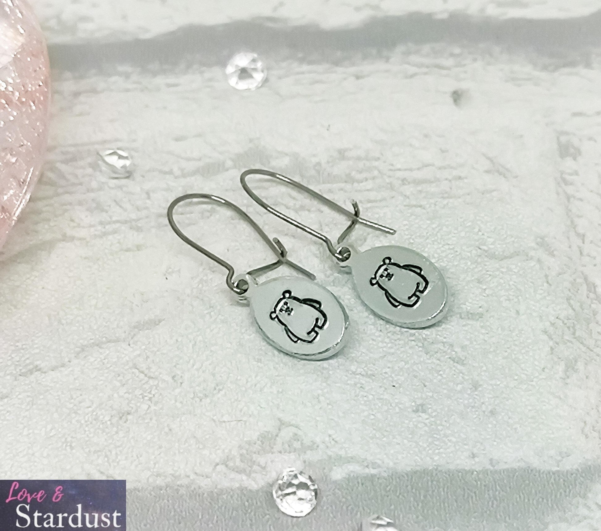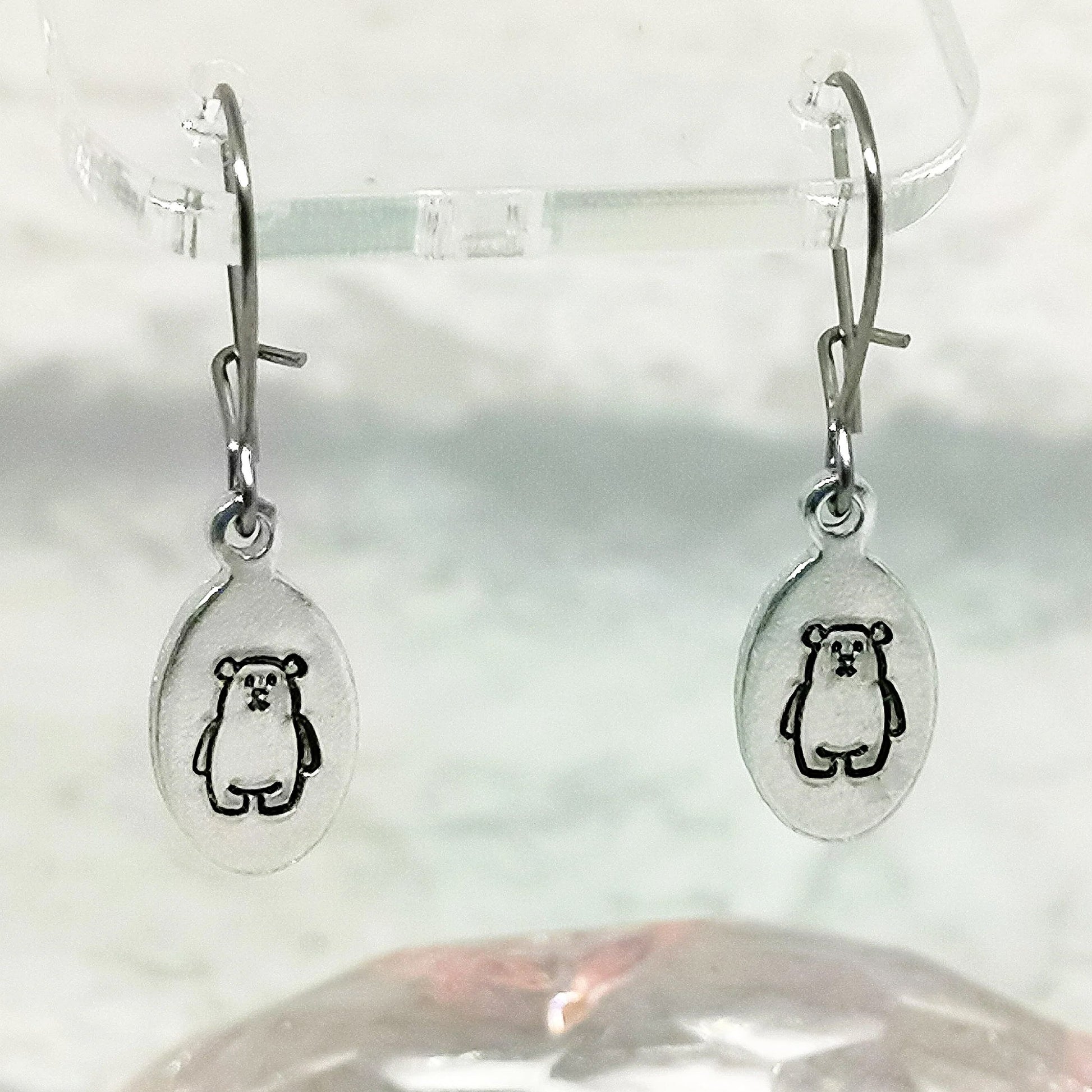 Hypo-allergenic Surgical Steel wires with hand-stamped drop tag with a POLAR BEAR design