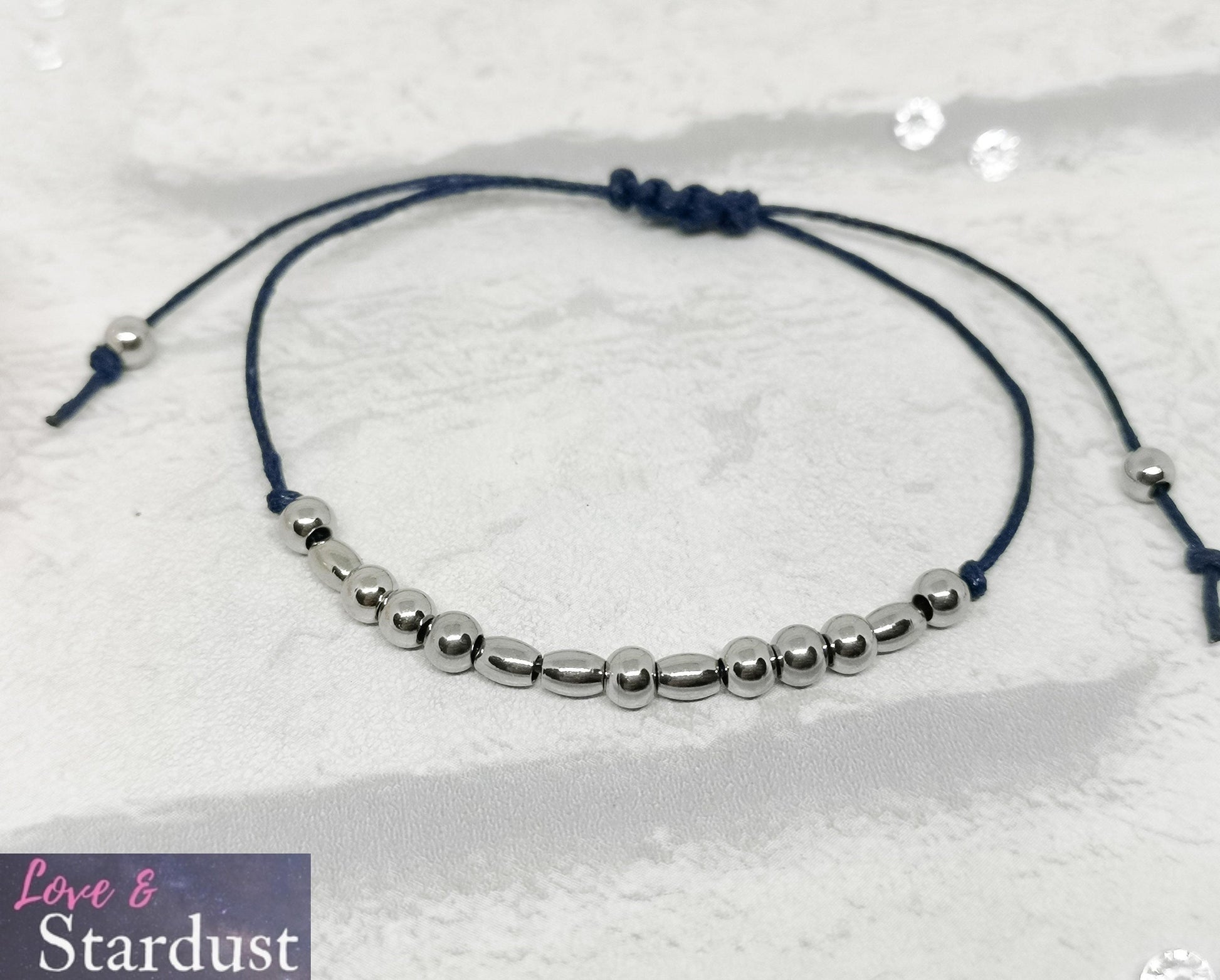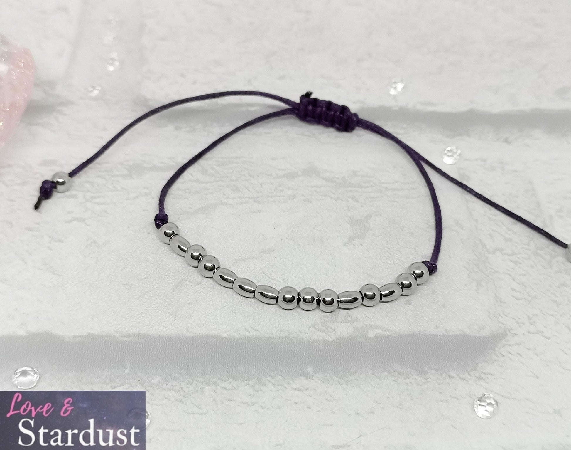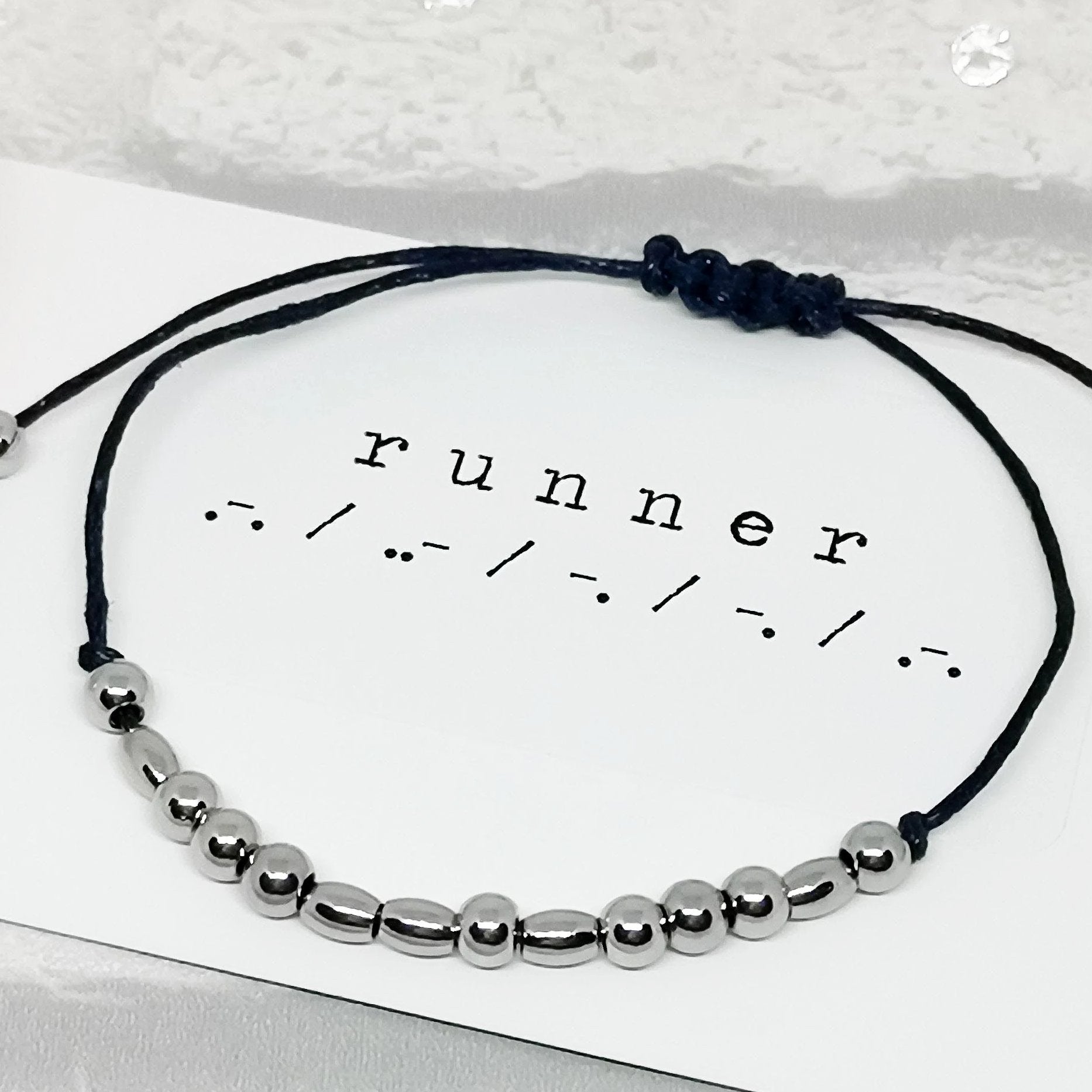 Cotton Corded slider bracelet with stainless steels beads spelling out the word RUNNER in morse code