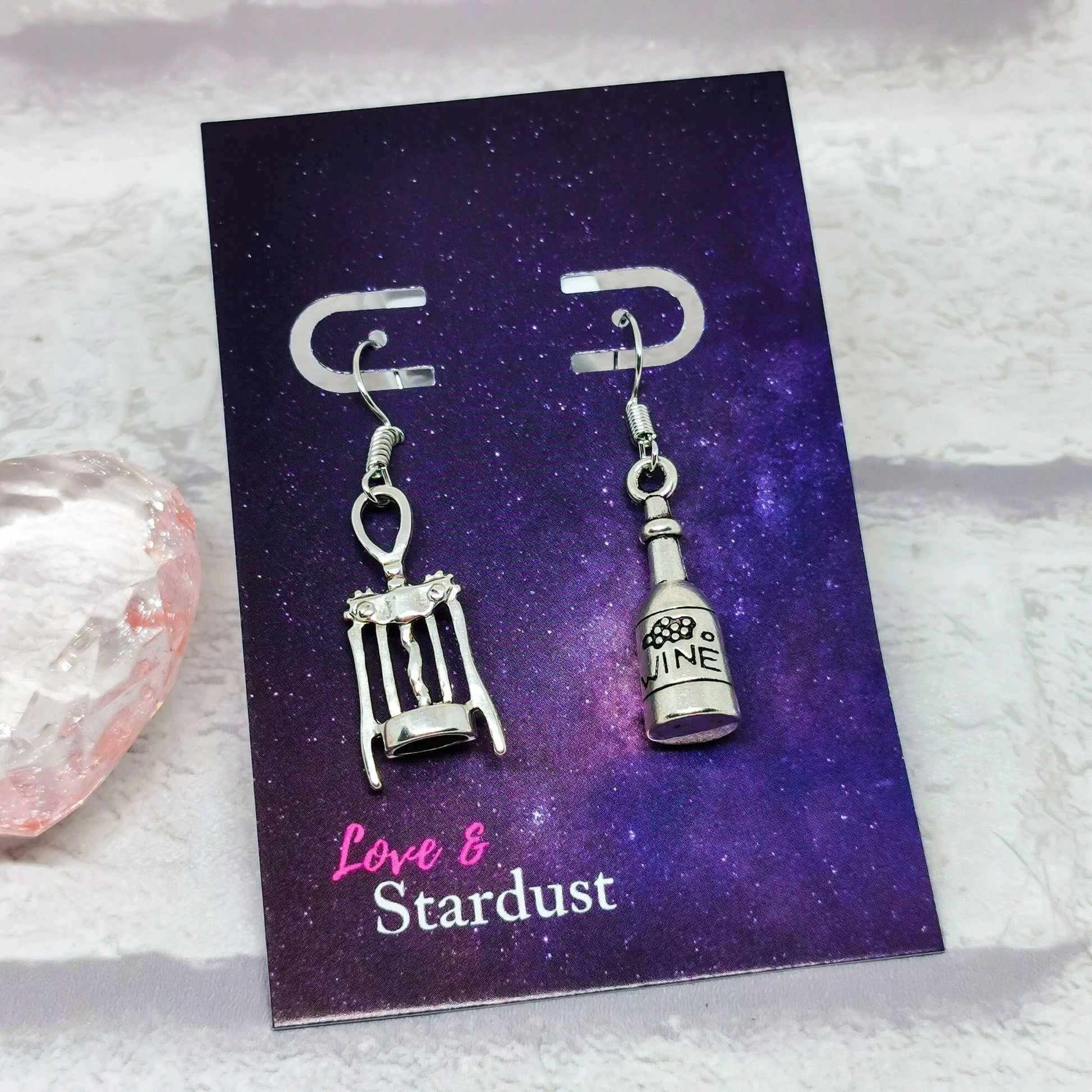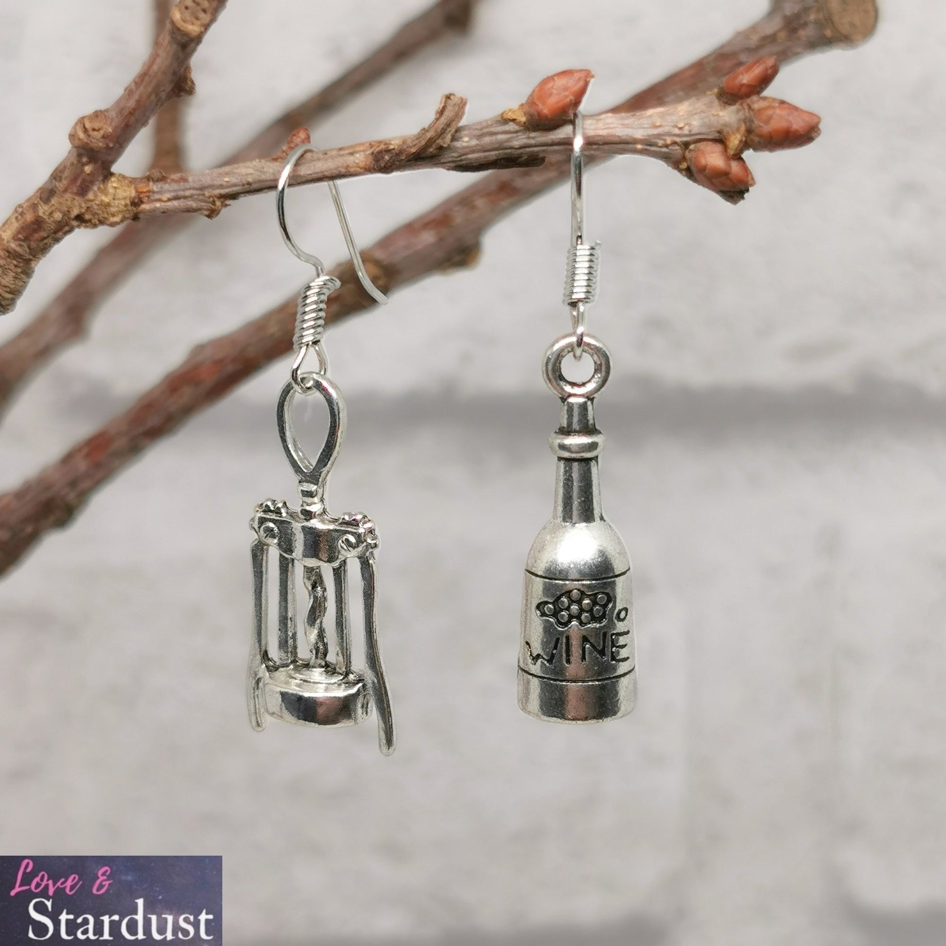 Silver plated ear wires with Tibetan Silver charms (one corkscrew and one bottle)