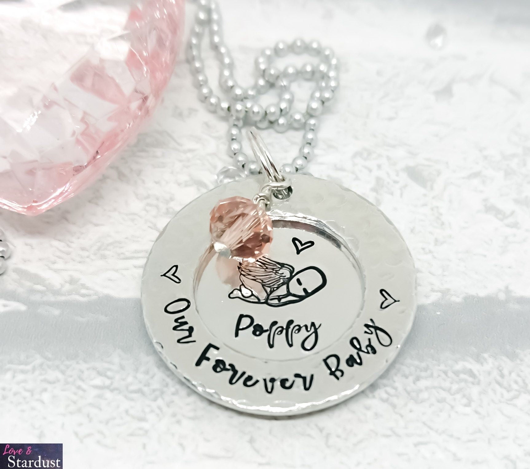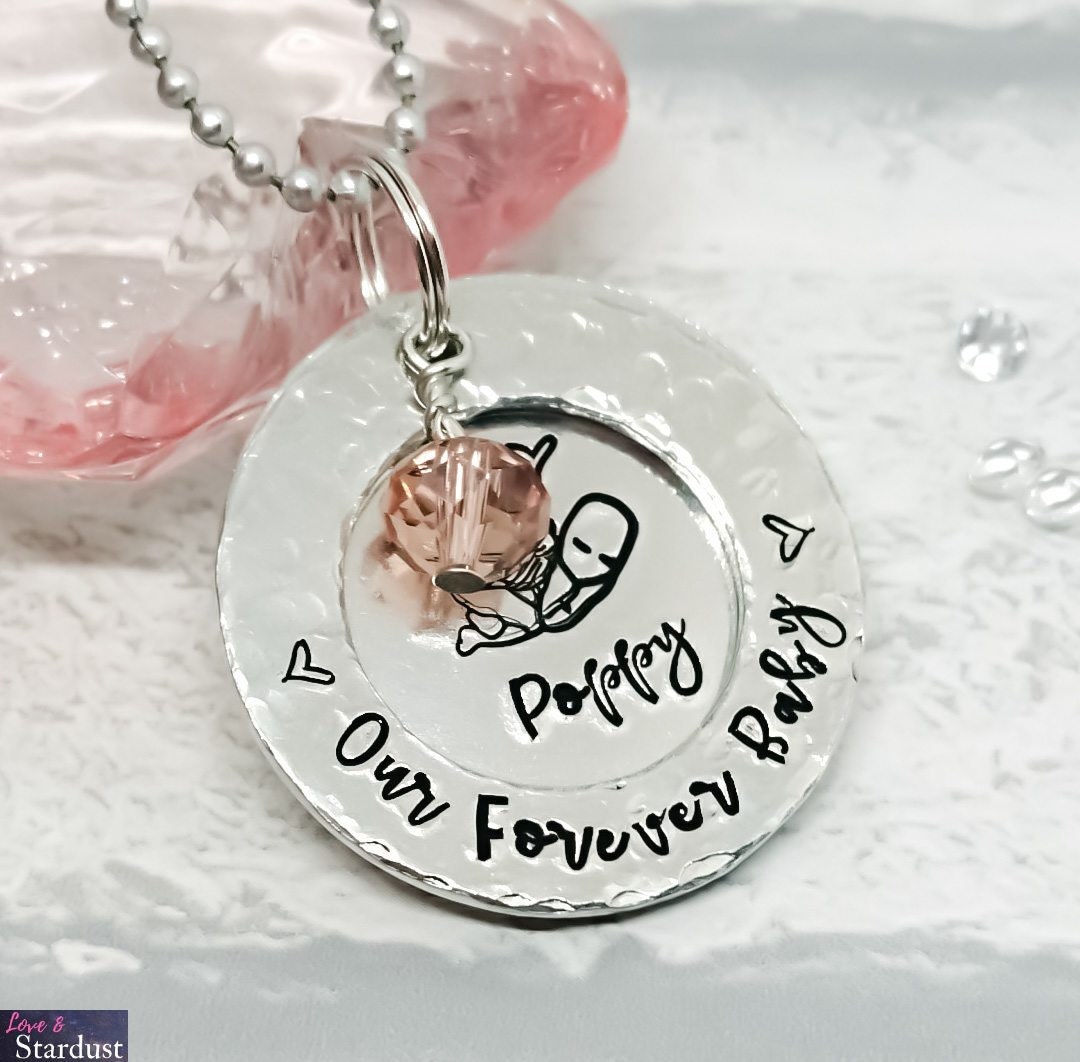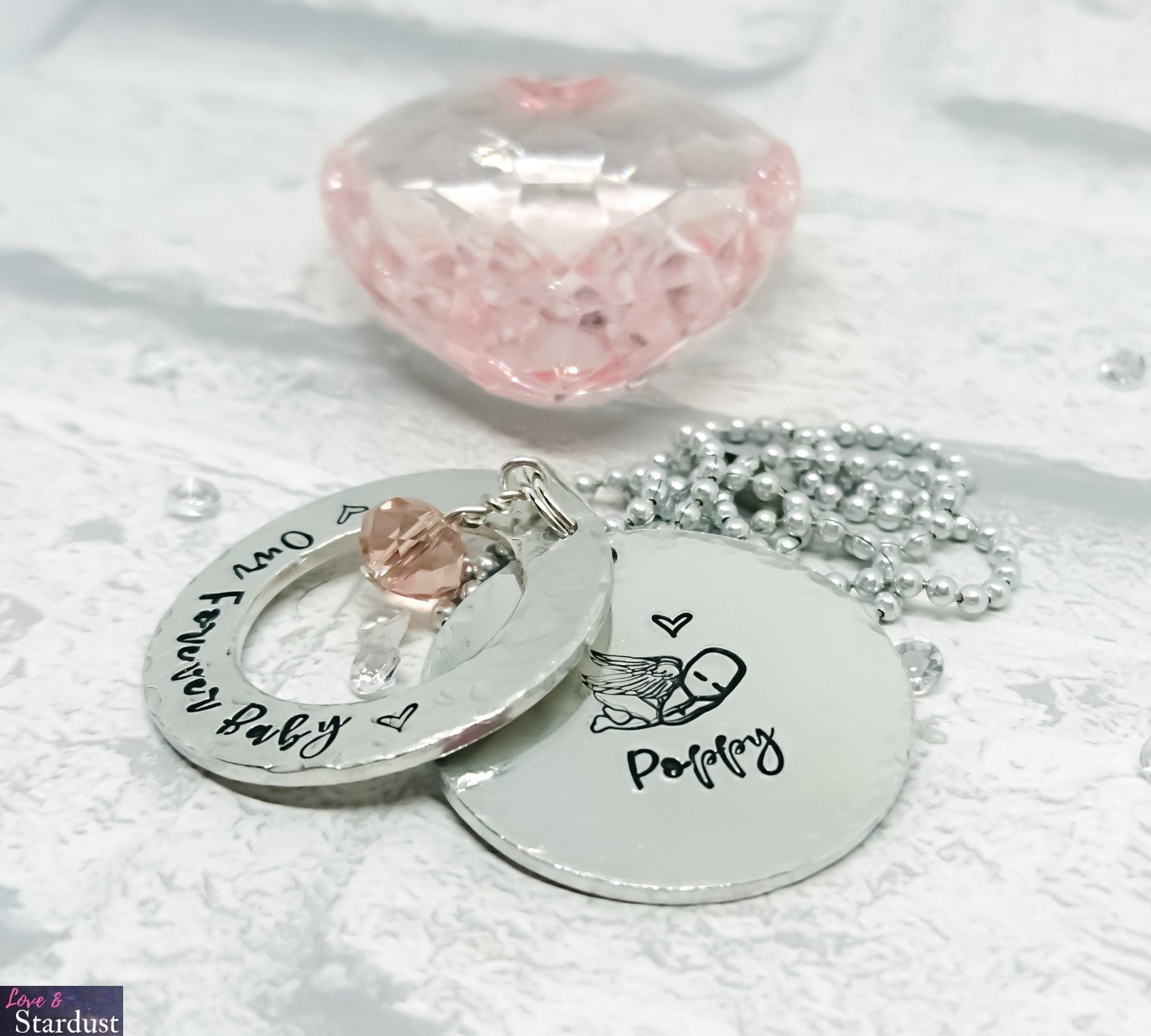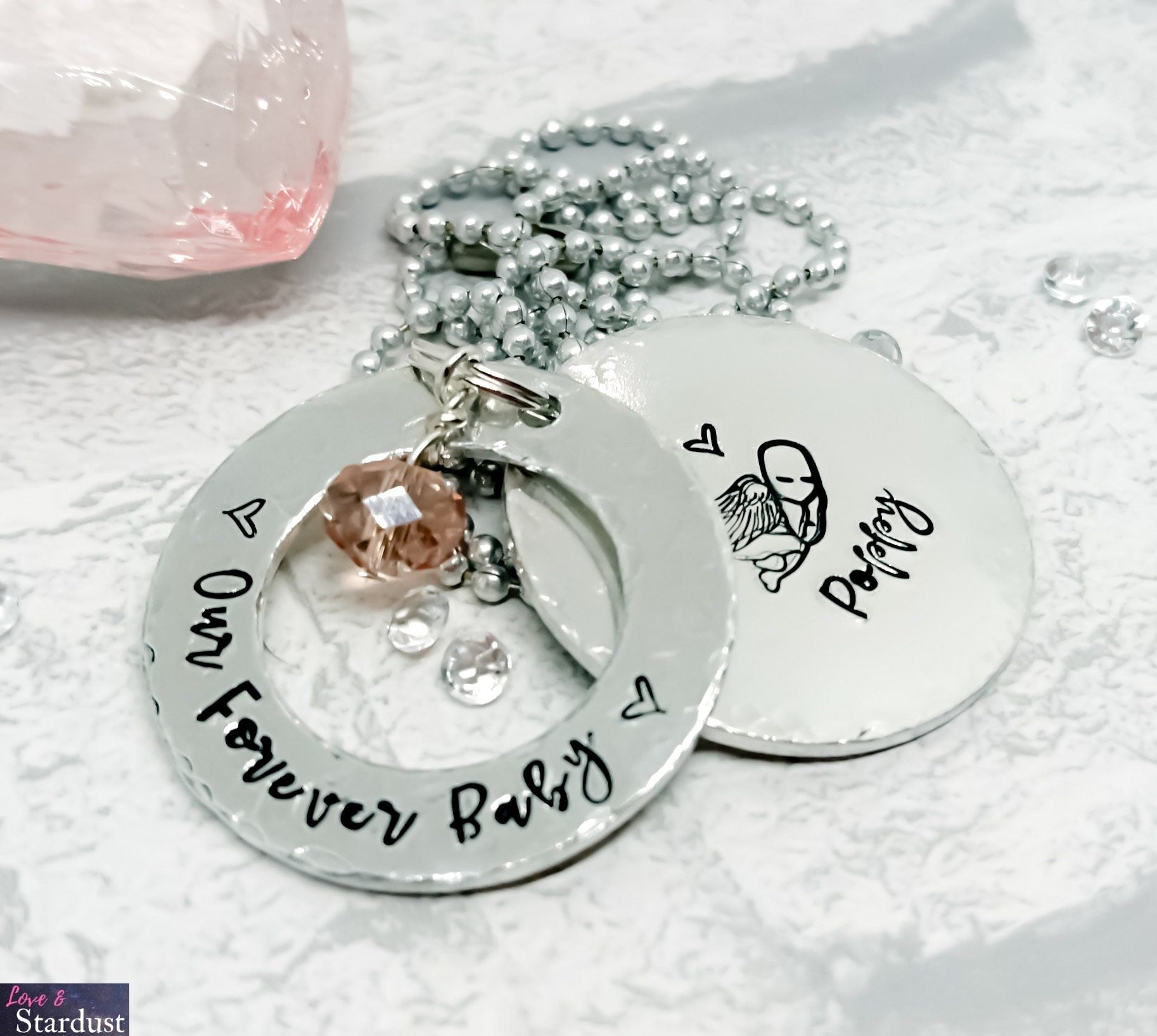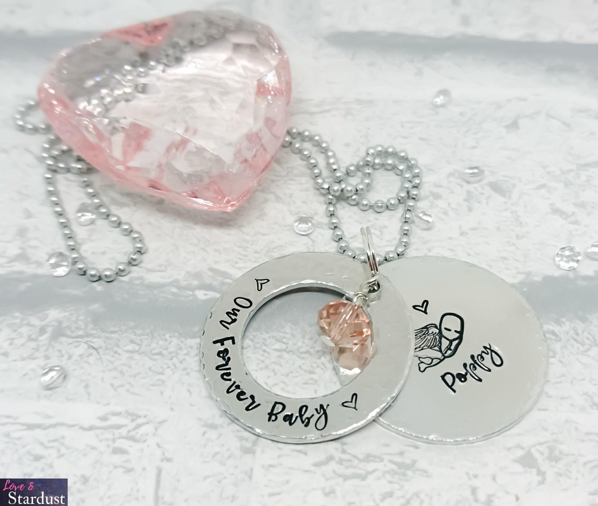 Hand Stamped large Aluminium two-layered pendant with a precious little Angel Baby and the wording "Our Forever Baby"