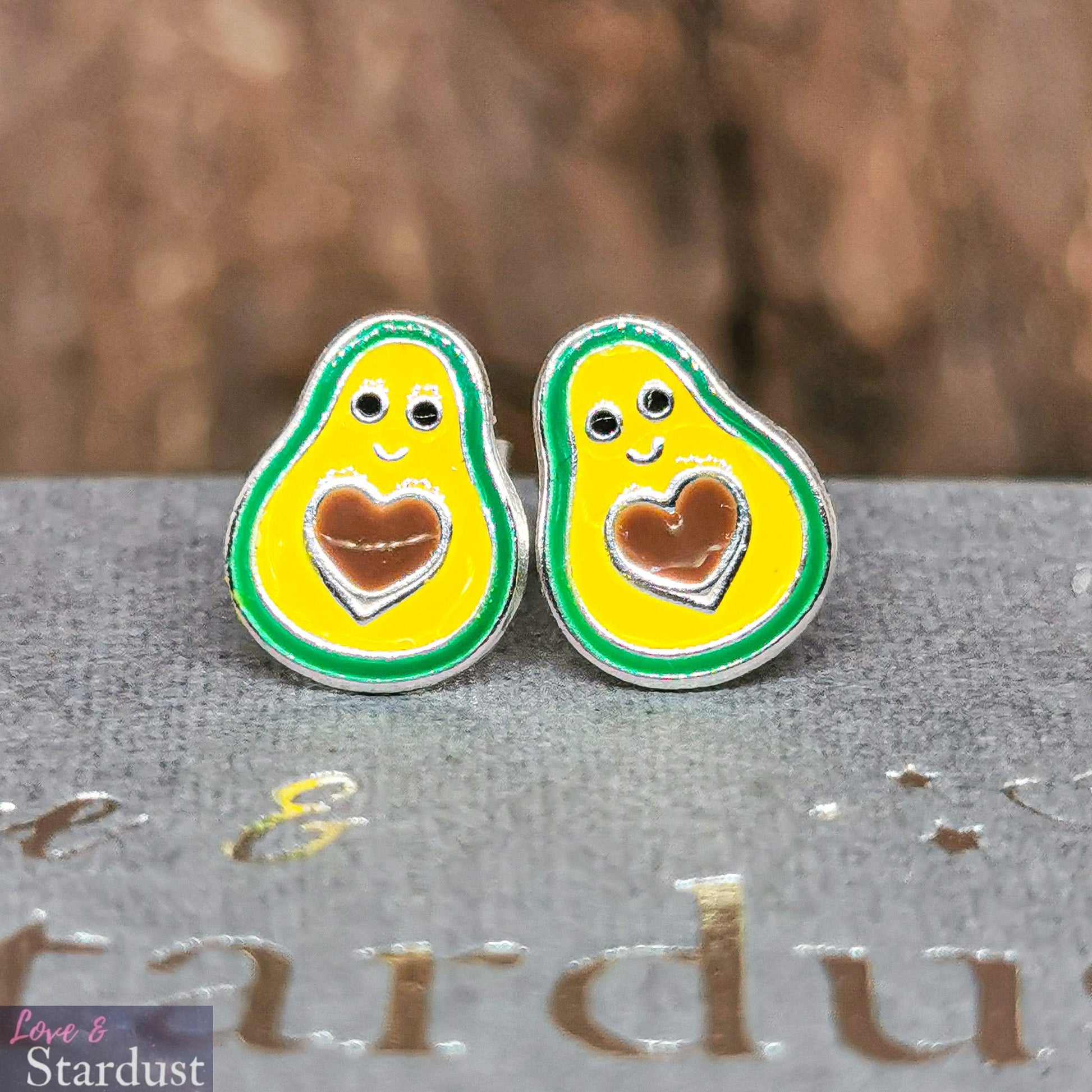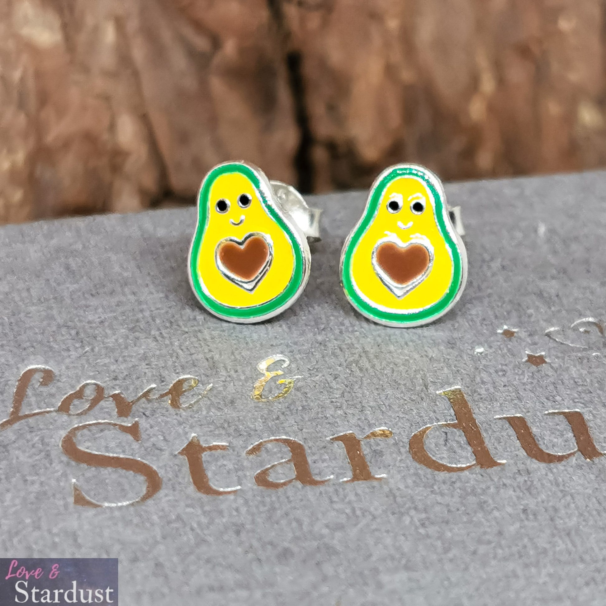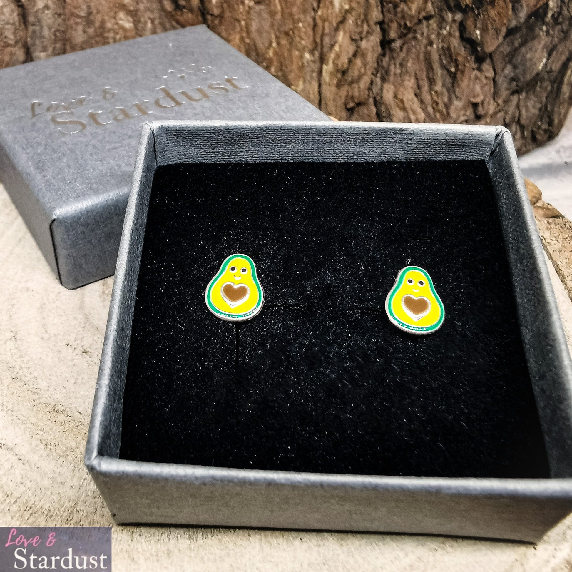 Solid 925 Sterling silver & Enamel Avocado earrings in a beautiful gift box
