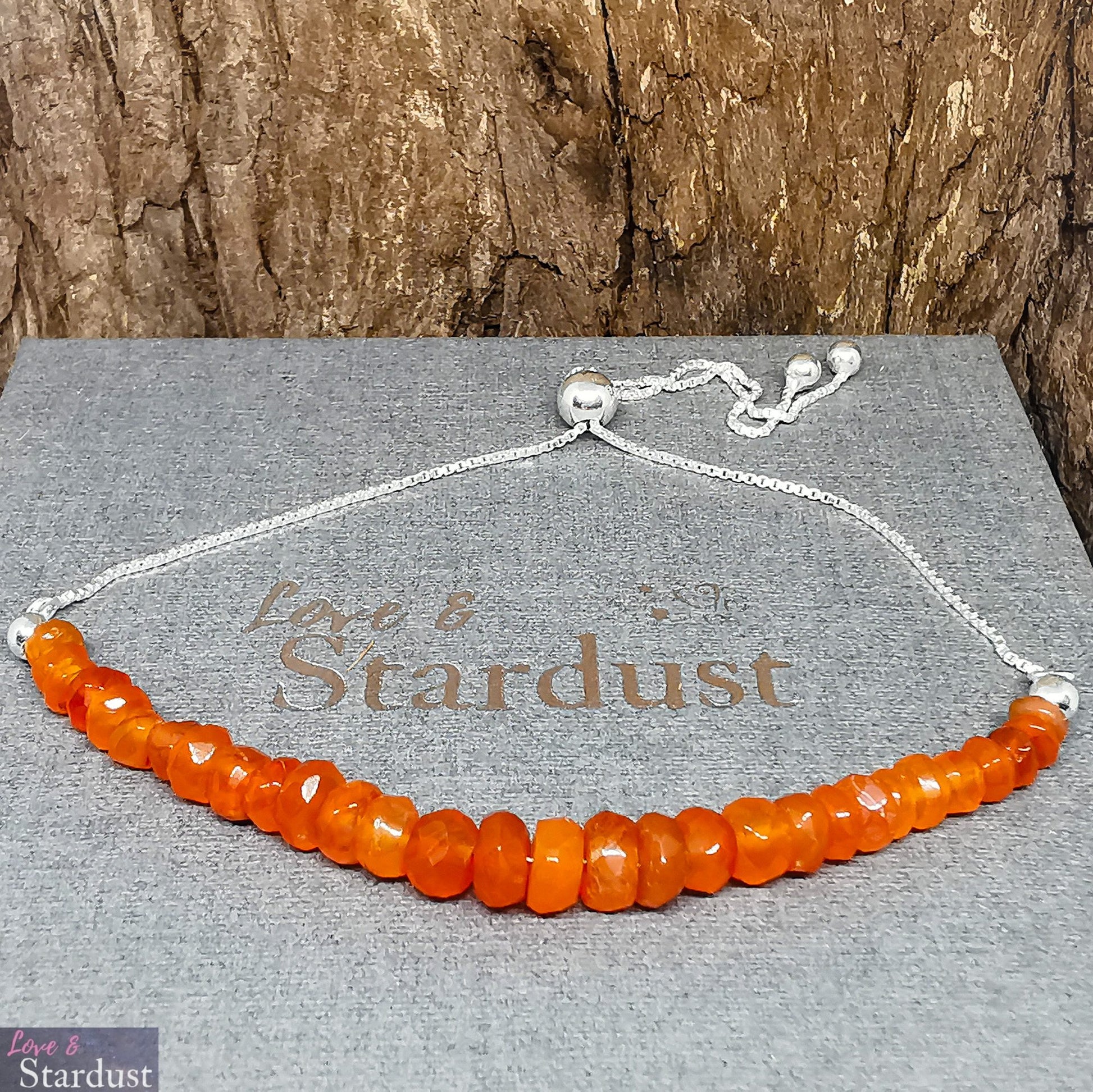 Sterling Silver Carnelian Slider Bracelet, presented in a beautiful gift box
