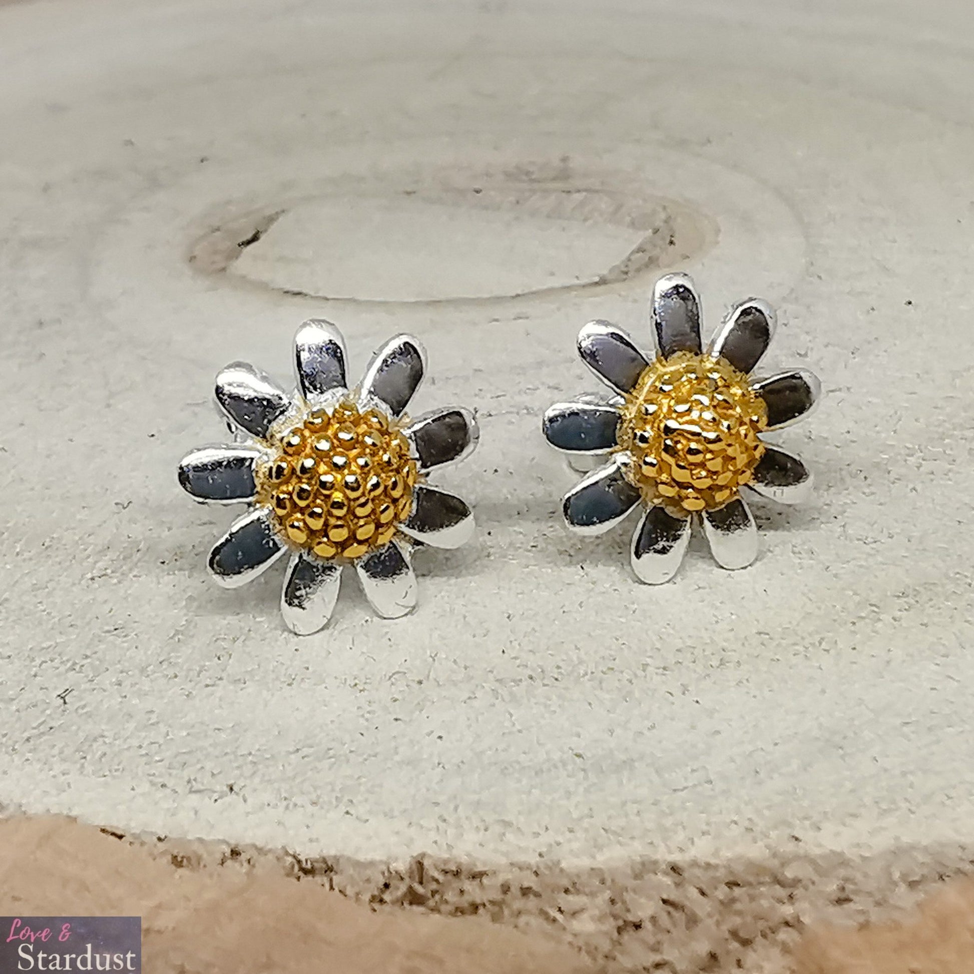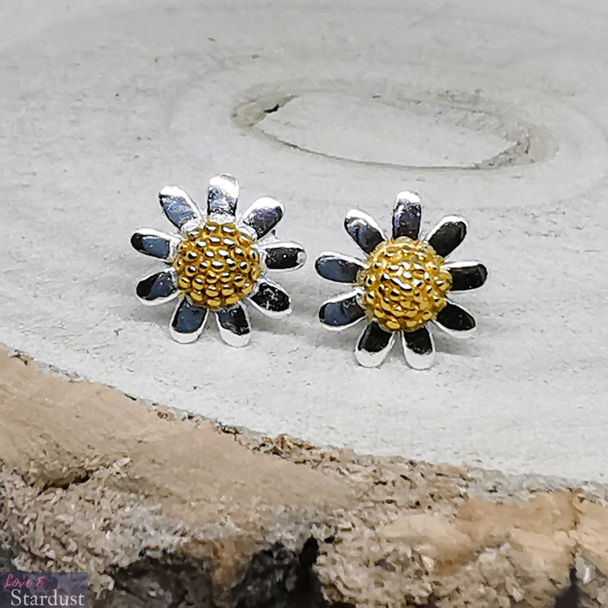 Solid 925 Sterling silver earrings with Gold Plated centre in a beautiful gift box.