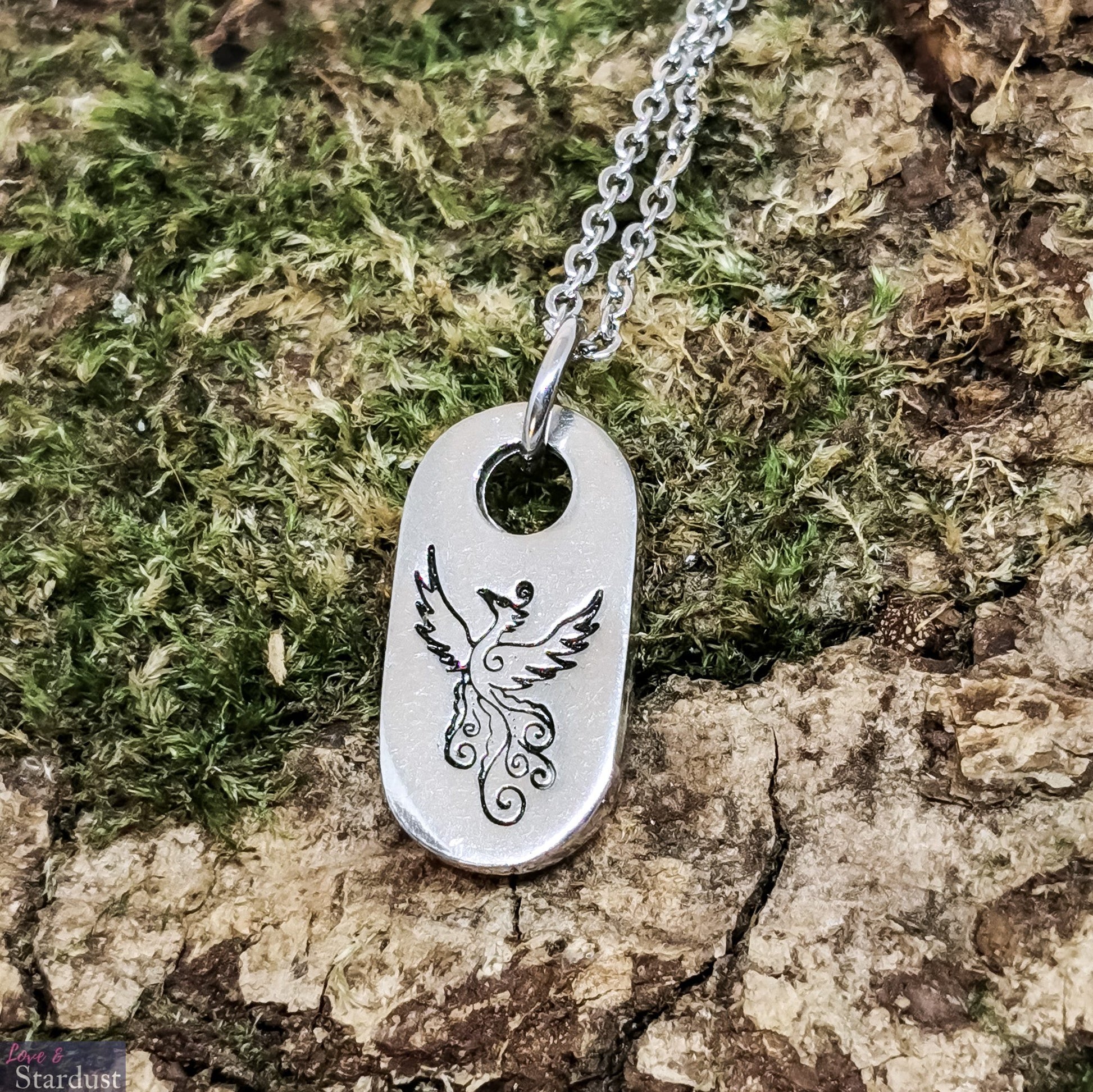 Hand cast Pewter Pendant, hand-stamped with a beautiful Phoenix