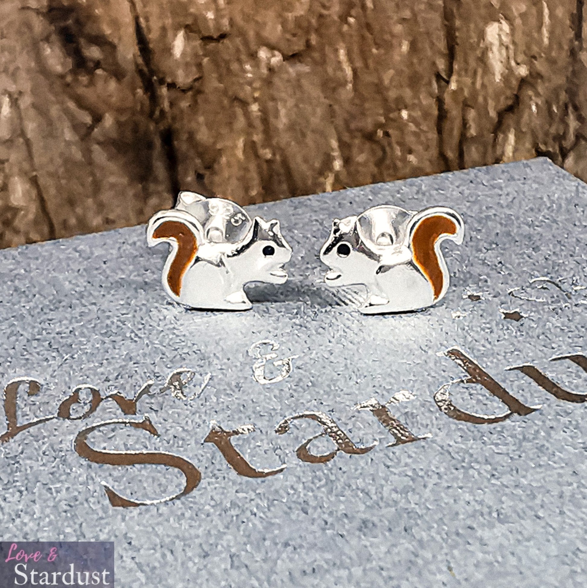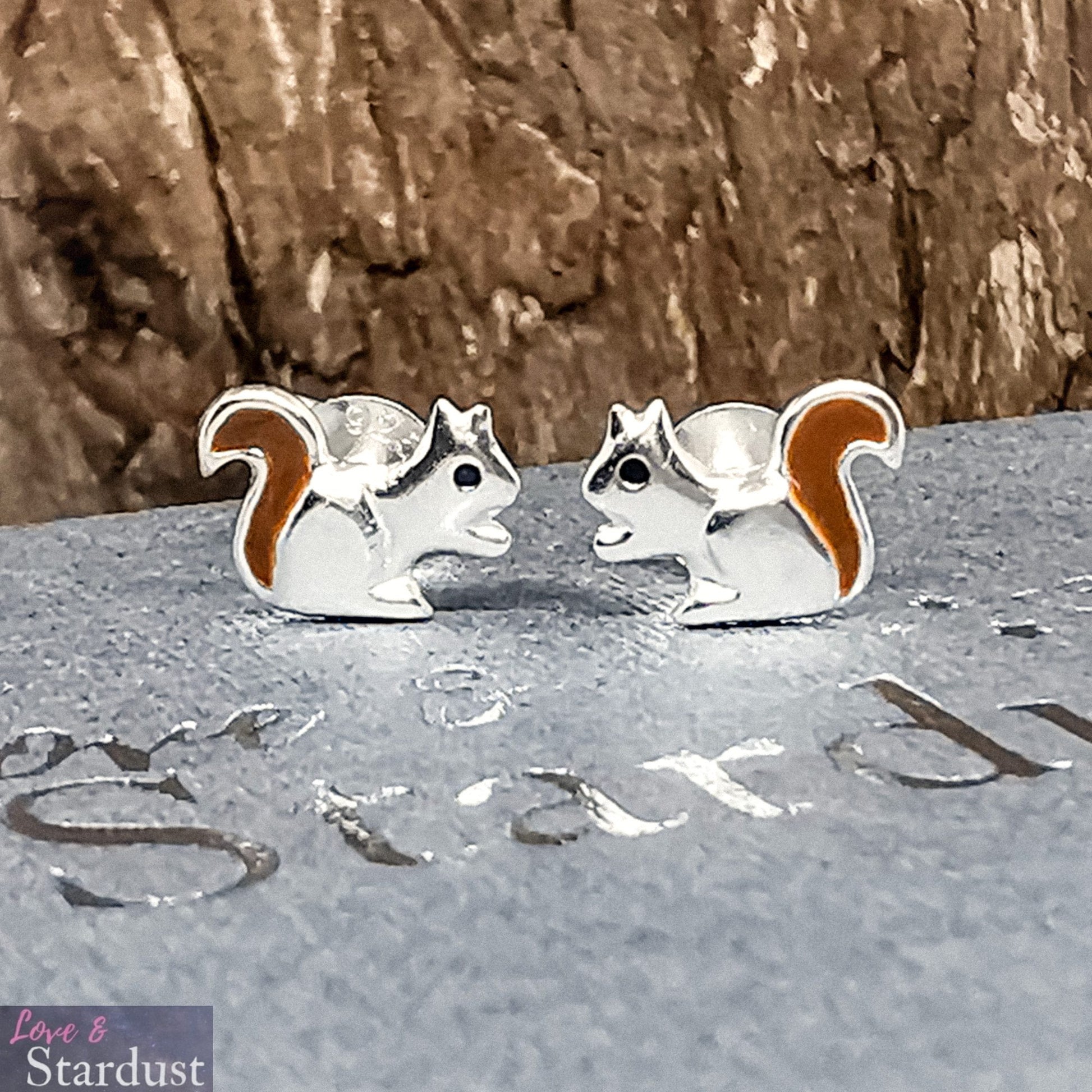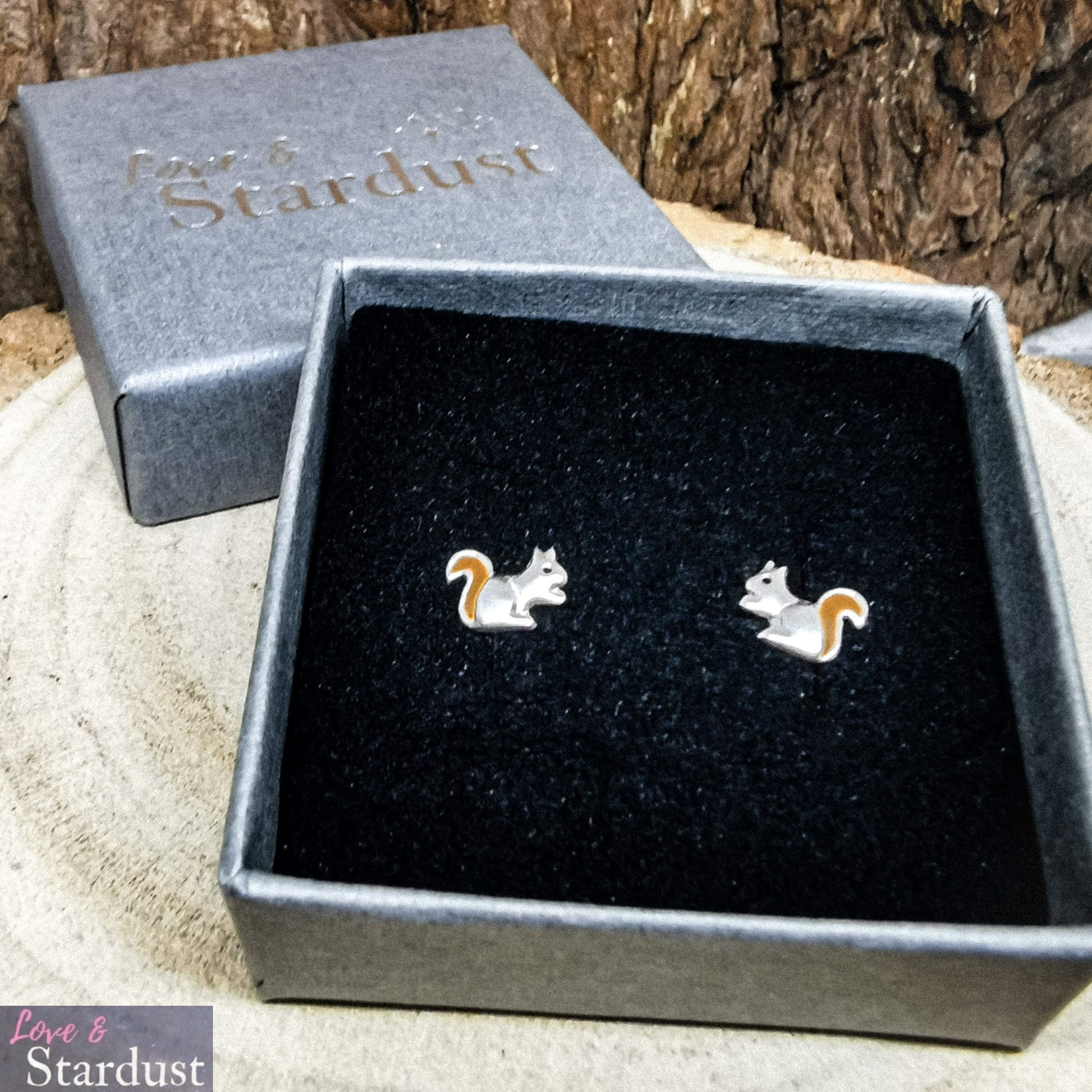 Solid 925 Sterling silver & enamel Squirrel earrings in a beautiful gift box.